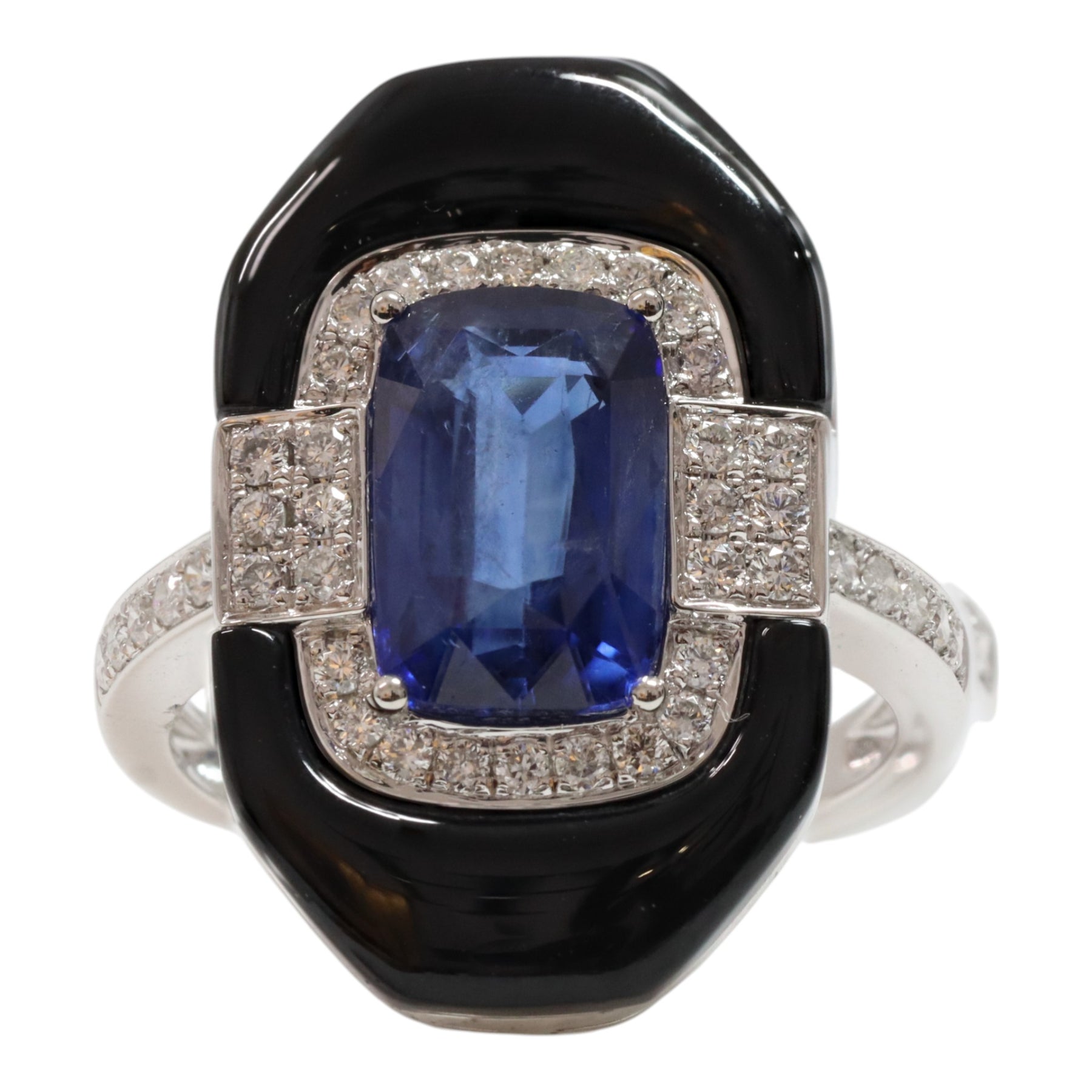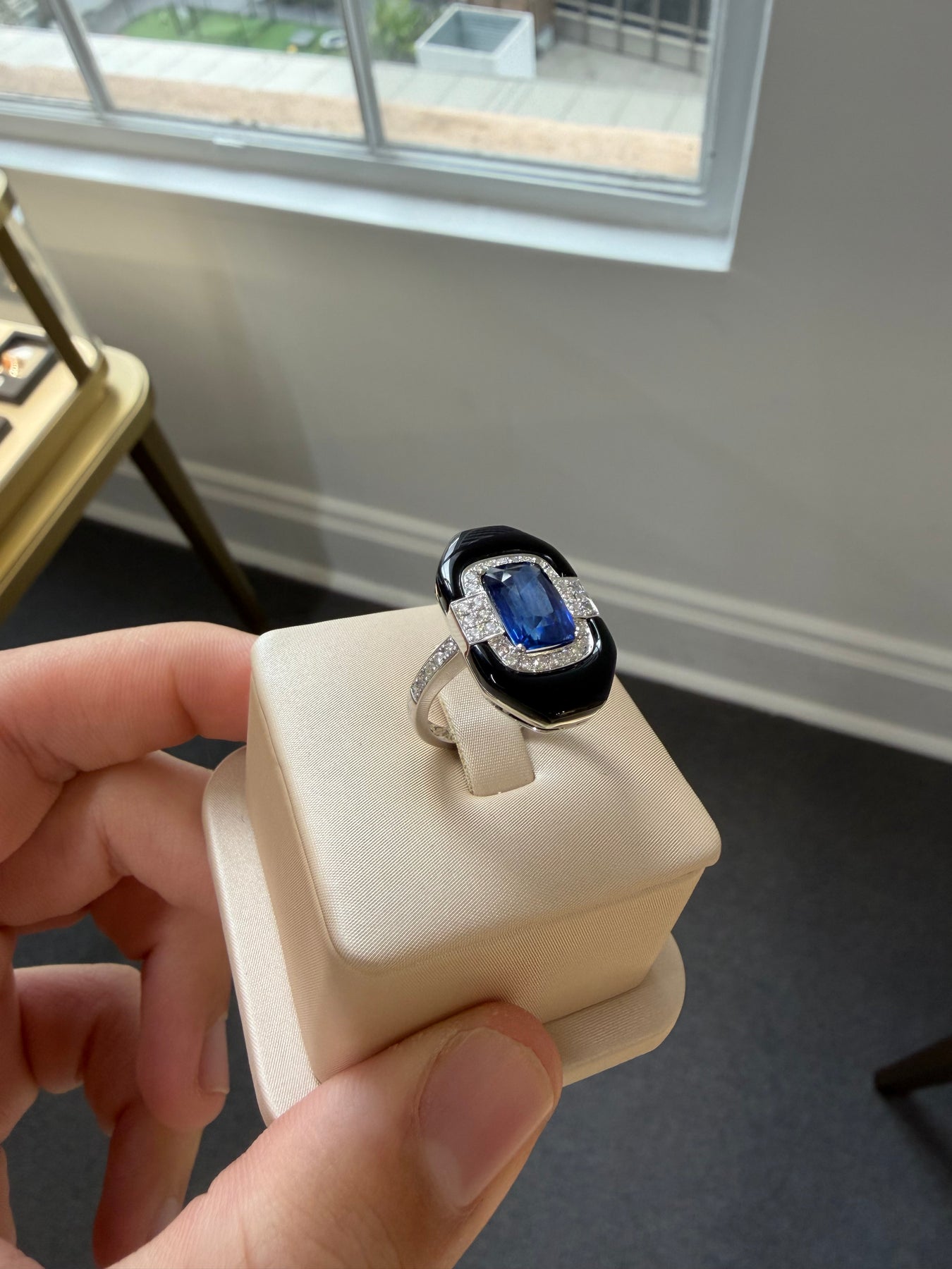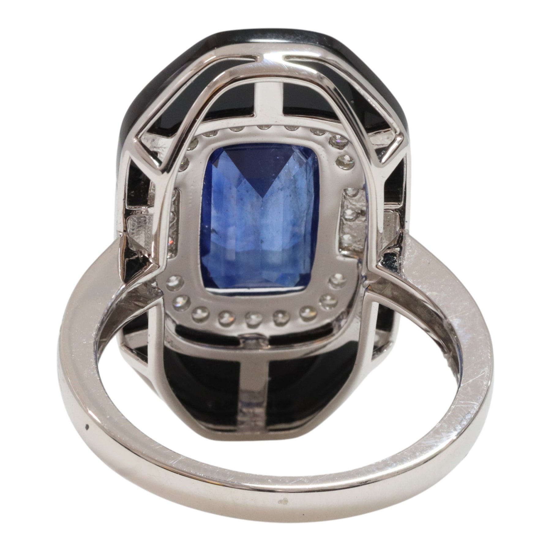 One claw set mixed cut rectangular cushion natural blue sapphire, colour is