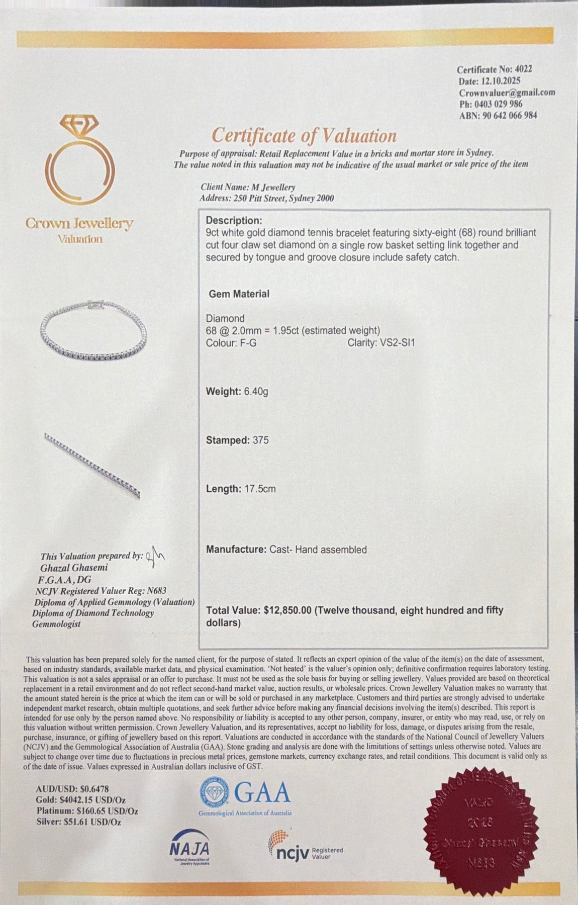 Natural Diamond Bracelet, in 9k white gold, claw set.