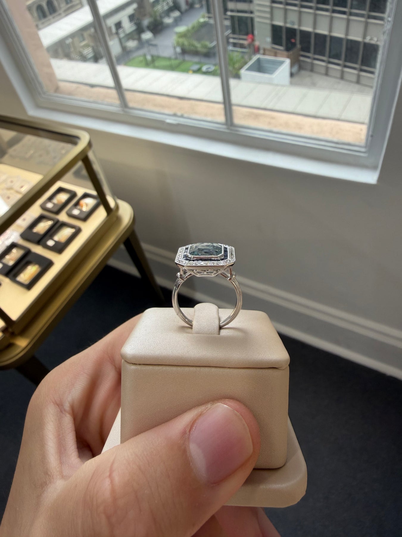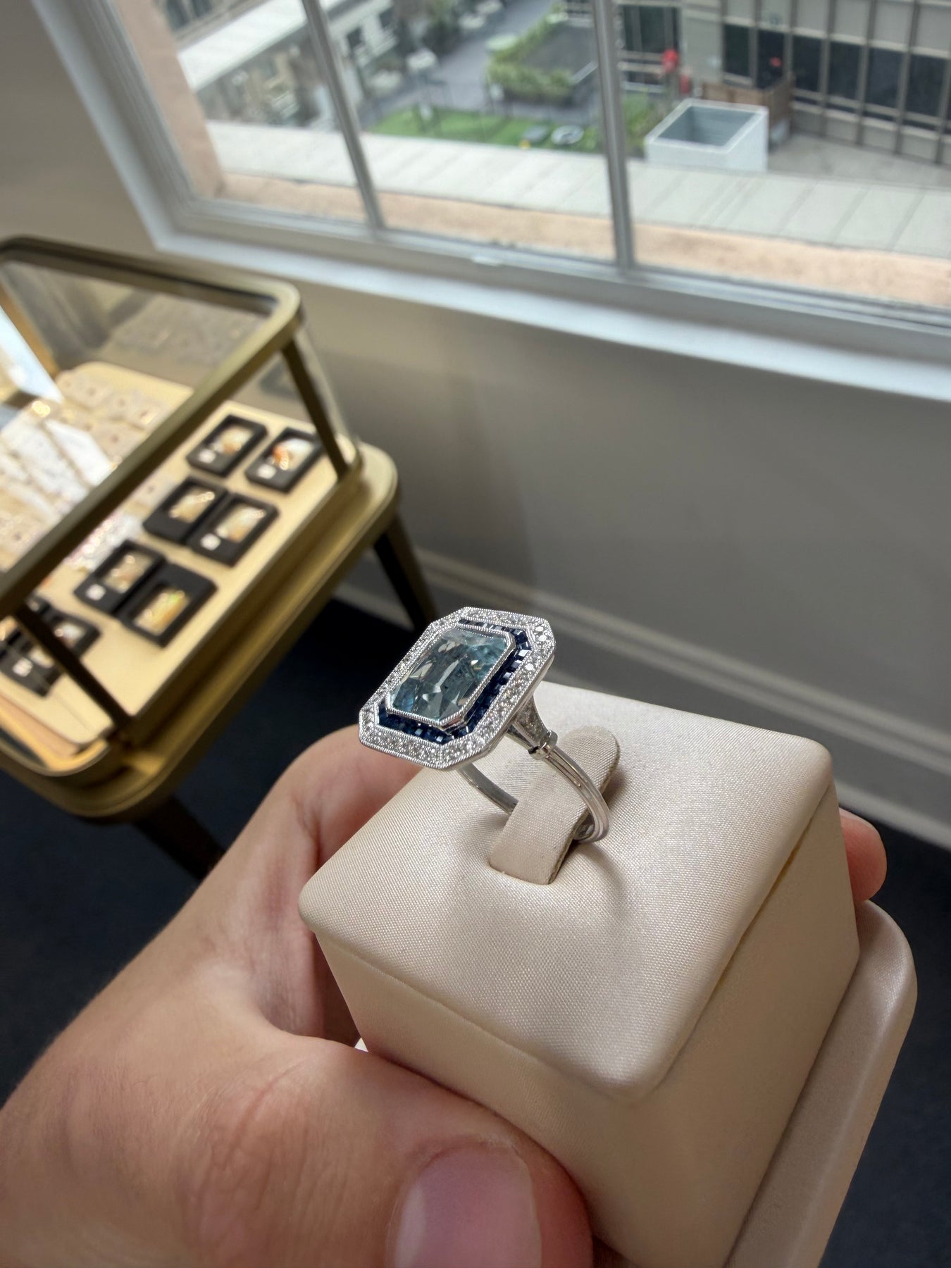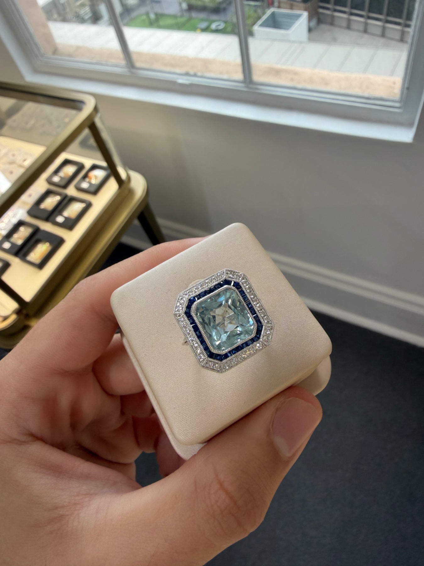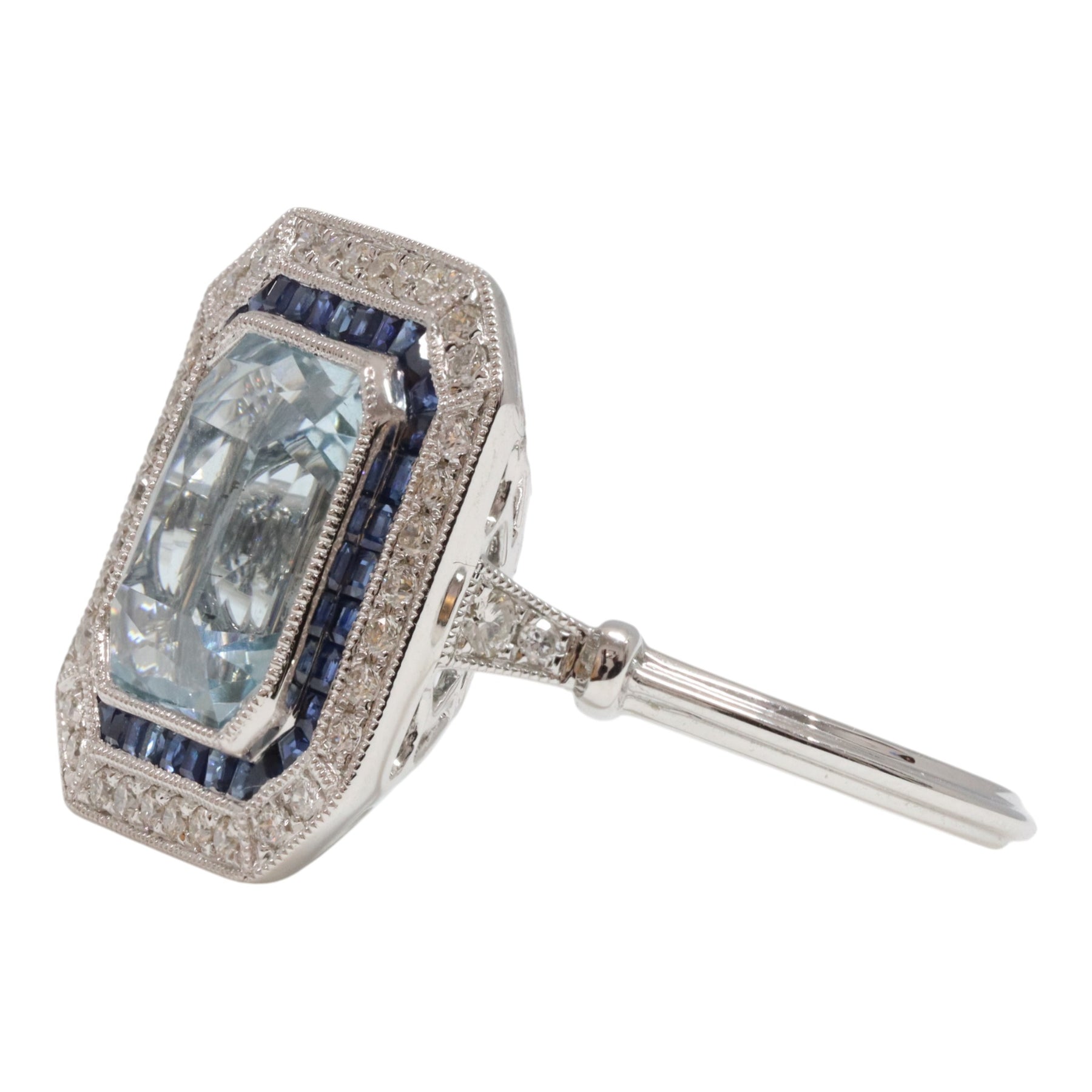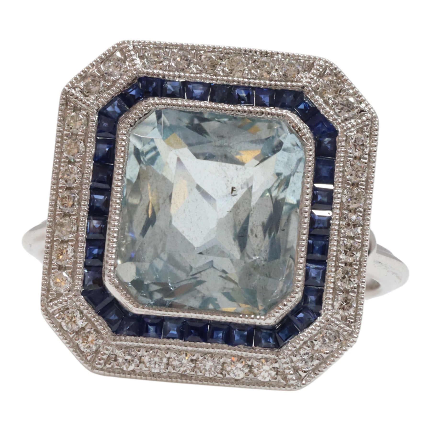One rub over set mixed cut emerald cut natural aquamarine, colour is