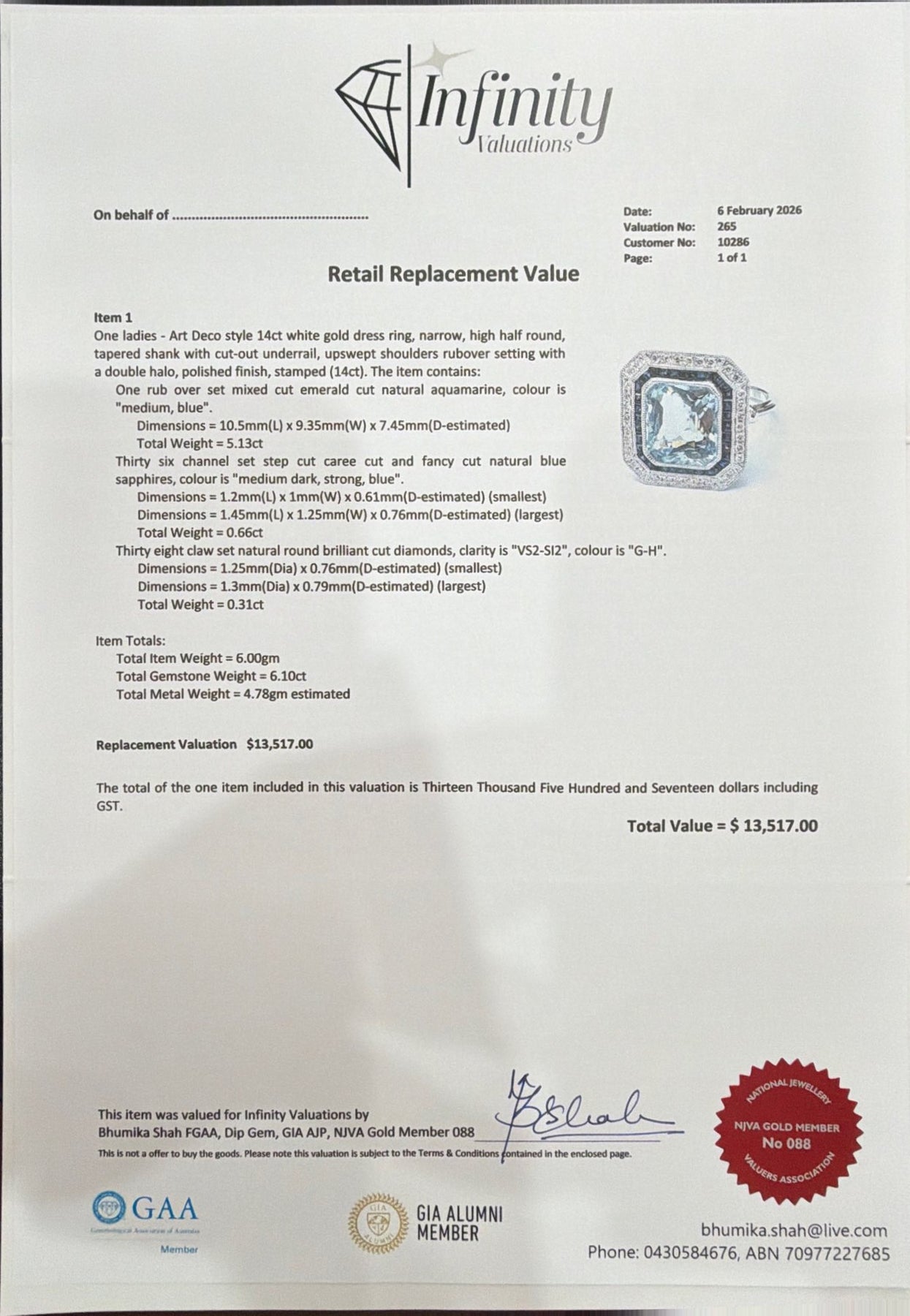 Total Weight = 5.13ct