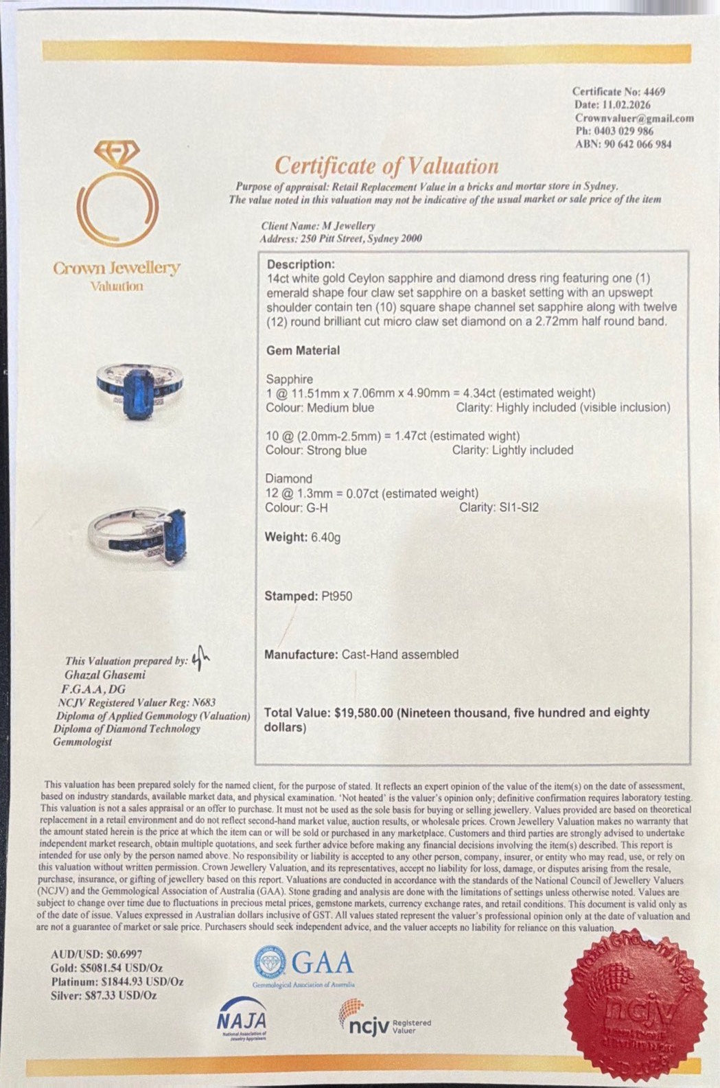 1 @ 11.51mm x 7.06mm x 4.90mm = 4.34ct (estimated weight)