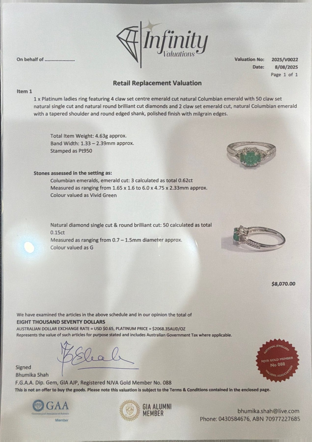 Stones assessed in the setting as: