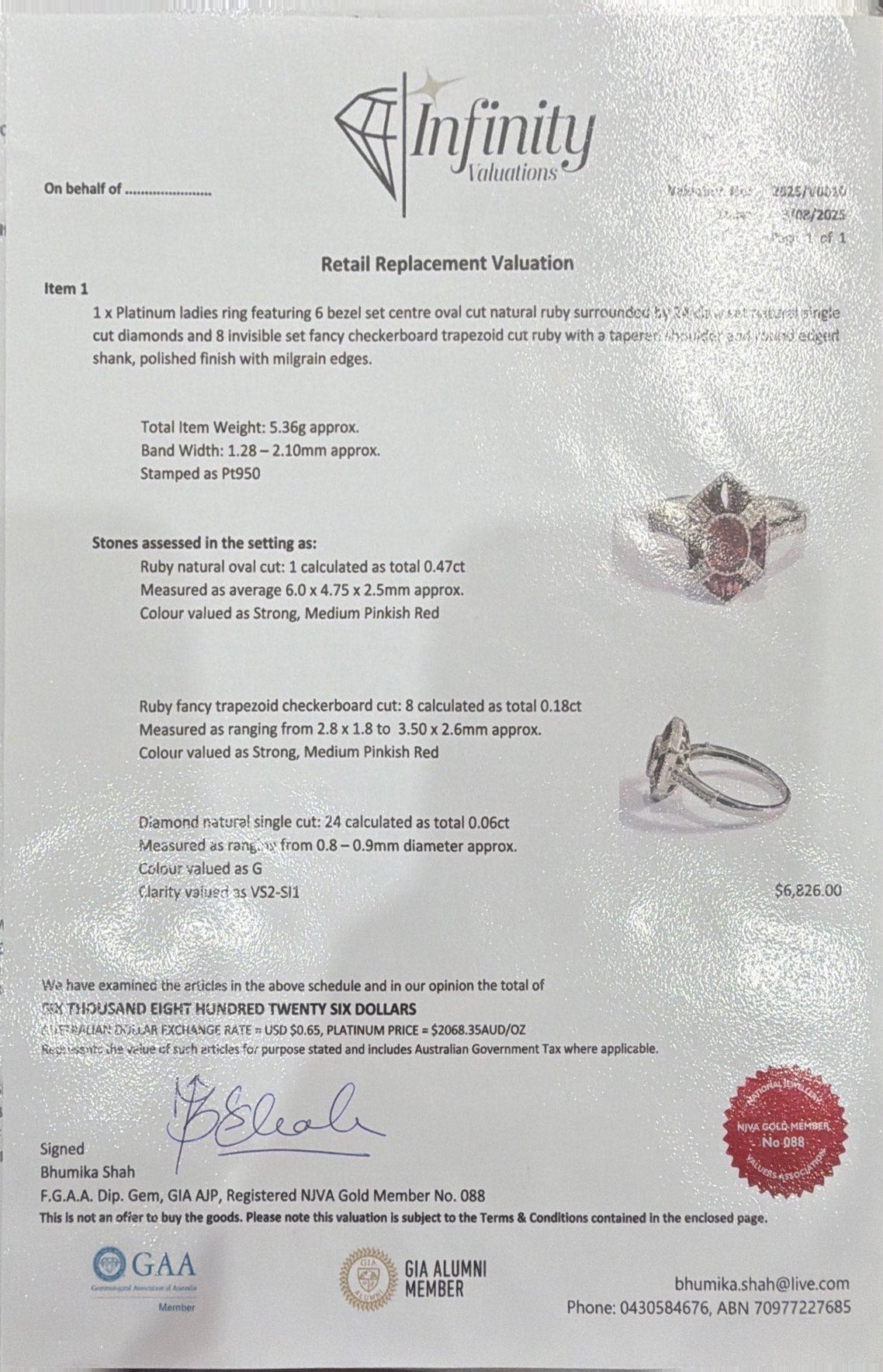 Ruby natural oval cut: 1 calculated as total 0.47ct