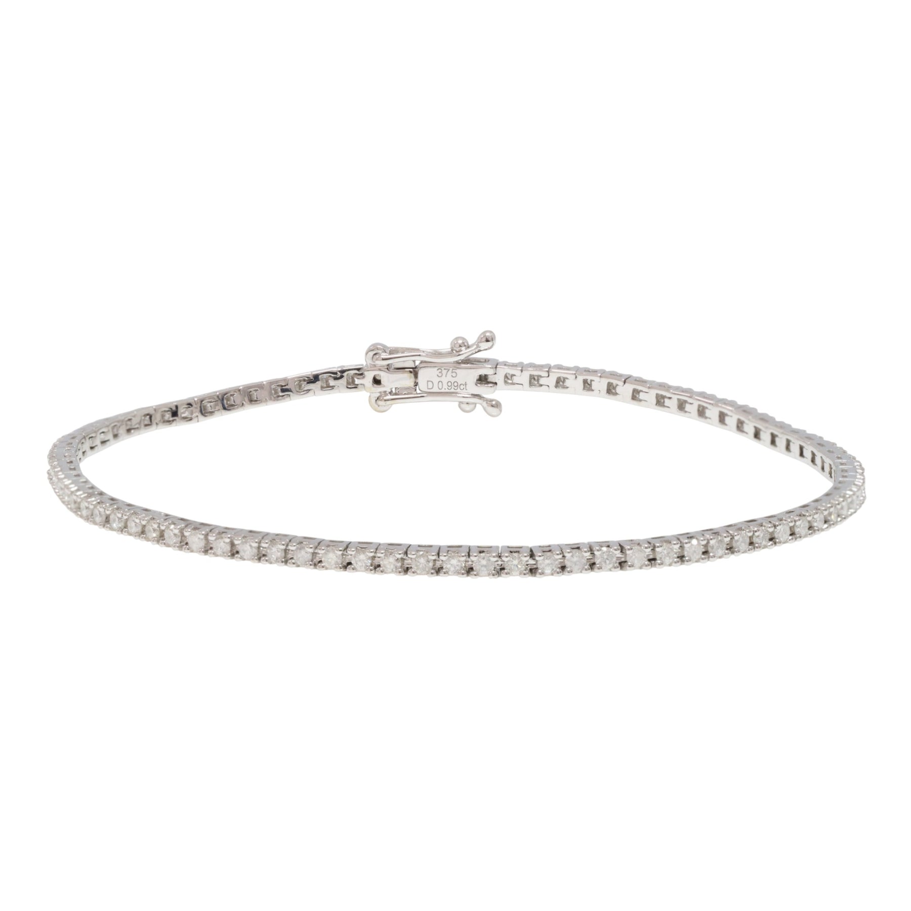 Natural Diamond Tennis Bracelet in 9K White Gold, claw set.
