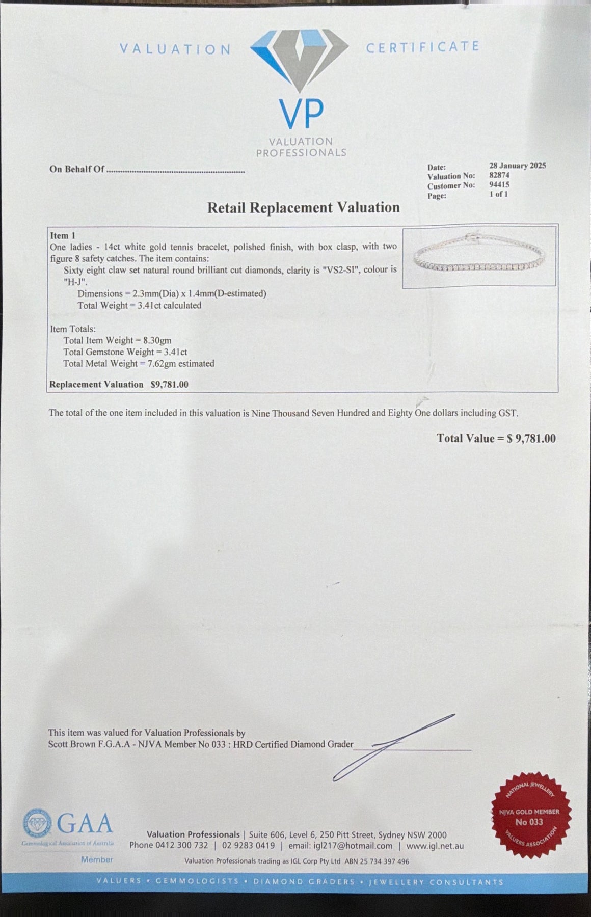 14k white gold, Natural Diamond tennis bracelet, claw set.